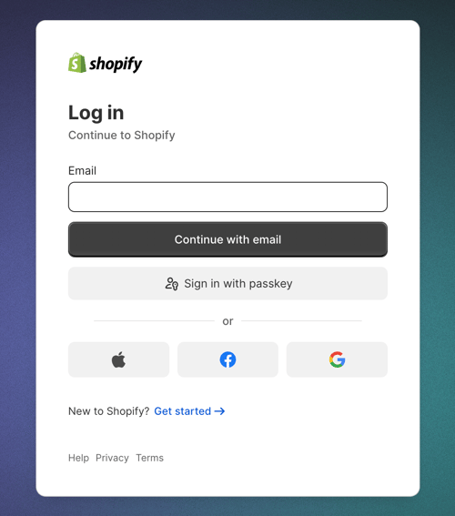 - Enter your Shopify store identifier (e.g., yourstorename.myshopify.com).