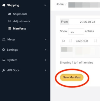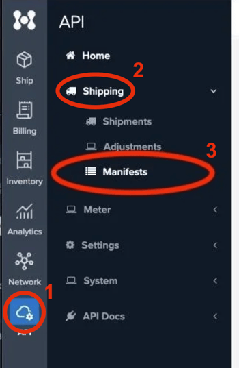 - Go to API > Shipping > Manifests.