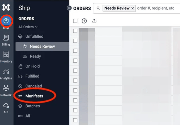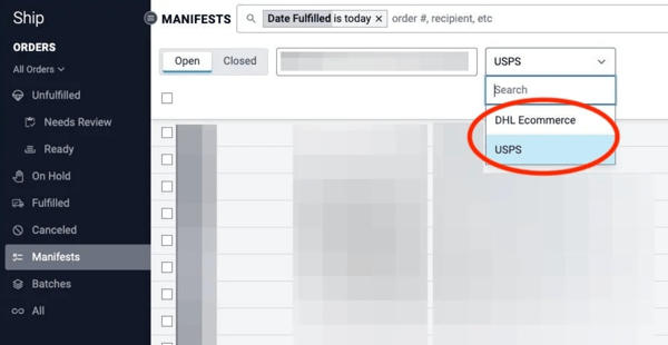- Click USPS or DHL eCommerce, depending on the shipments you want to manifest.