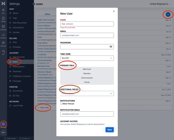 Easily add team members to your eHub Ship account to streamline logistics, manage shipments, and access reports collaboratively.