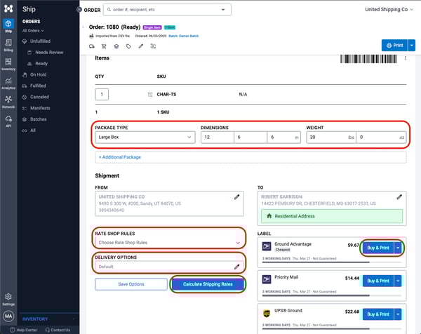 - Click Calculate Shipping Rates.