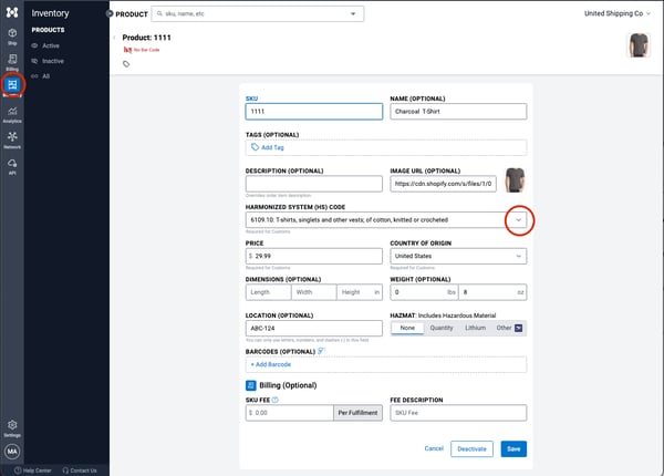 Note: Assigning an HS Code here also updates the product in your inventory, ensuring it automatically applies to future orders containing this item.
